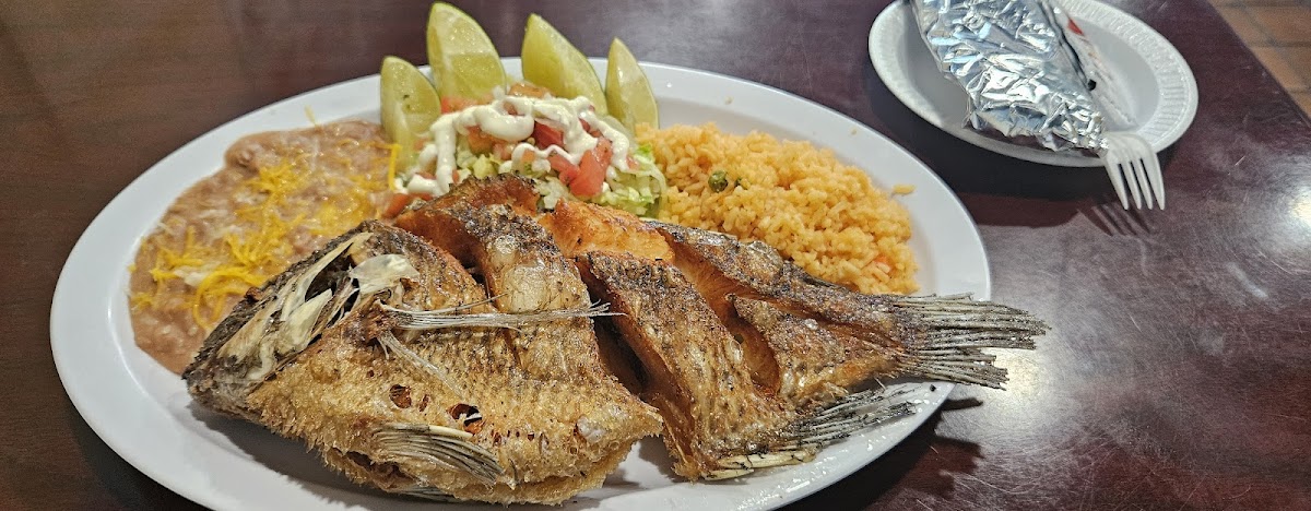 One of the restaurant’s most popular dishes is the Aguachiles. This fresh, zesty dish features succulent shrimp bathed in a tangy lime and chili sauce, offering the perfect balance of heat and refreshment. For those who prefer something with a bit more heartiness, the Al Pastor tacos are a must-try. These perfectly marinated pork tacos are cooked to perfection and served with vibrant toppings like pineapple, cilantro, and onions. And if you're in the mood for something crispy, the Mojarra Frita, a fried whole tilapia, is a standout. The crispy fish paired with the tangy salsa makes for an unbeatable combination.
